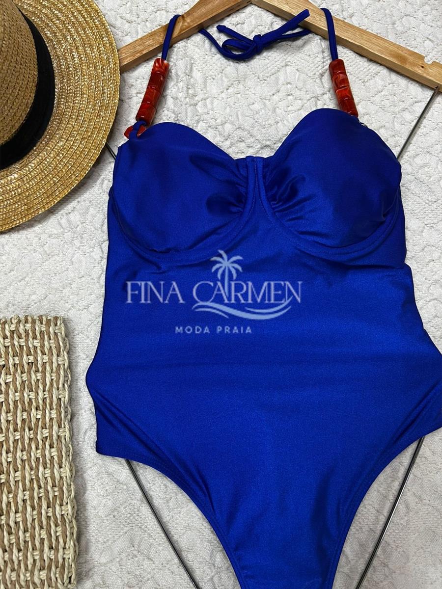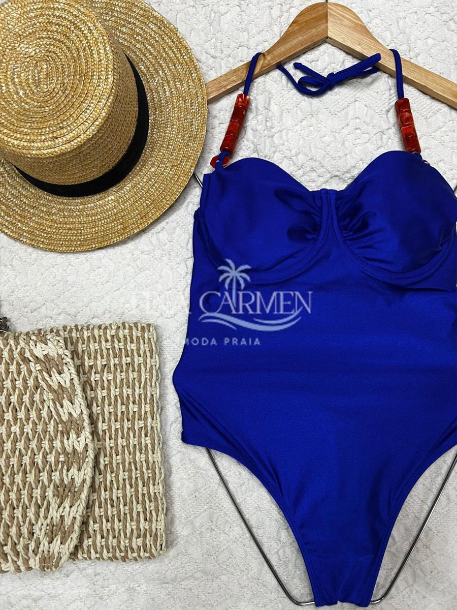 O maiô azul com pedraria é sinônimo de elegância e sofisticação. Sua modelagem estruturada valoriza o corpo com conforto, enquanto o detalhe em pedrarias nos ombros traz um toque de luxo e exclusividade. O tecido de brilho sutil realça o tom intenso do azul, perfeito para destacar o bronzeado.