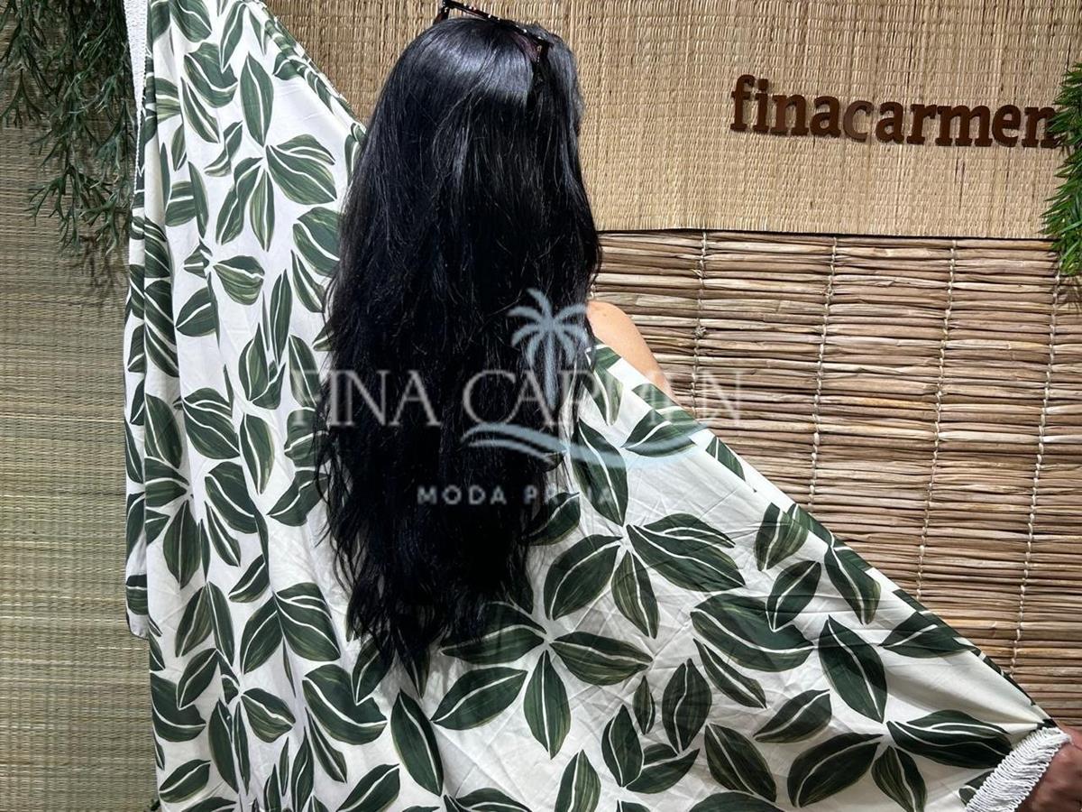 A Canga Folhagem Verde Elegance é o toque perfeito de frescor e sofisticação para seus dias de sol. Com estampa exuberante de folhas em tons de verde sobre fundo claro, transmite leveza e elegância tropical em uma peça versátil e cheia de estilo.