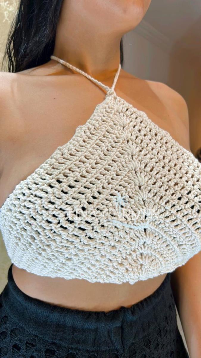 Top Crochê Halter Natural