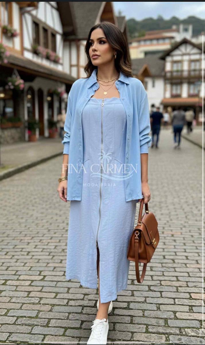 A fenda frontal traz movimento e alonga a silhueta, deixando a peça ainda mais versátil — perfeita para passeios, viagens, produções casuais refinadas e combinações que vão do tênis ao salto. É aquele vestido que transforma o look inteiro sozinho.