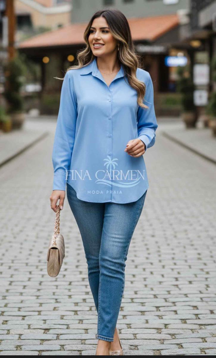 Com gola tradicional, botões frontais e mangas que podem ser usadas dobradas ou alongadas, a peça entrega versatilidade real: vai do casual chic ao social leve com zero esforço. O tecido fluido dá movimento e deixa o look naturalmente alinhado.
