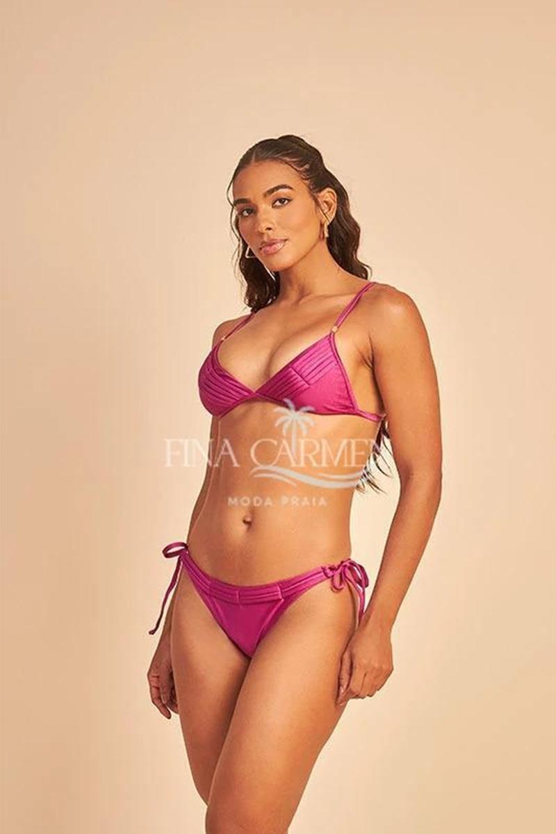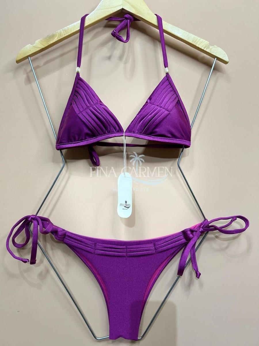 Vibrante e cheio de charme, o biquíni roxo cortininha com amarração lateral é um clássico repaginado que combina conforto e estilo. O top no modelo cortininha possui recortes delicados e bojo removível, oferecendo sustentação e ajuste perfeito ao corpo. A calcinha com amarrações laterais permite regulagem personalizada, destacando a silhueta com elegância e feminilidade.