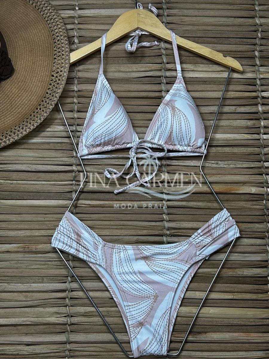 O biquíni rosa estampado traz um toque leve e romântico ao visual praiano! Com top modelo cortininha ajustável, ele oferece versatilidade e conforto, permitindo amarrações personalizadas. A calcinha apresenta modelagem média com laterais franzidas, que valorizam as curvas de forma delicada e natural.