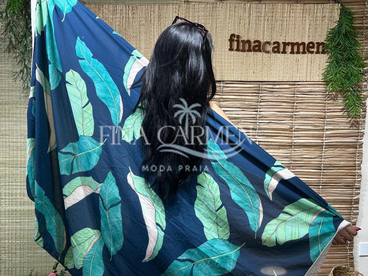 A Canga Folhas Tropicais Azul Marinho traz o charme natural das folhagens tropicais em uma paleta elegante e refrescante. O contraste do azul profundo com tons de verde suave e detalhes em bege cria uma estampa sofisticada e atemporal, perfeita para os dias de sol e momentos à beira-mar.