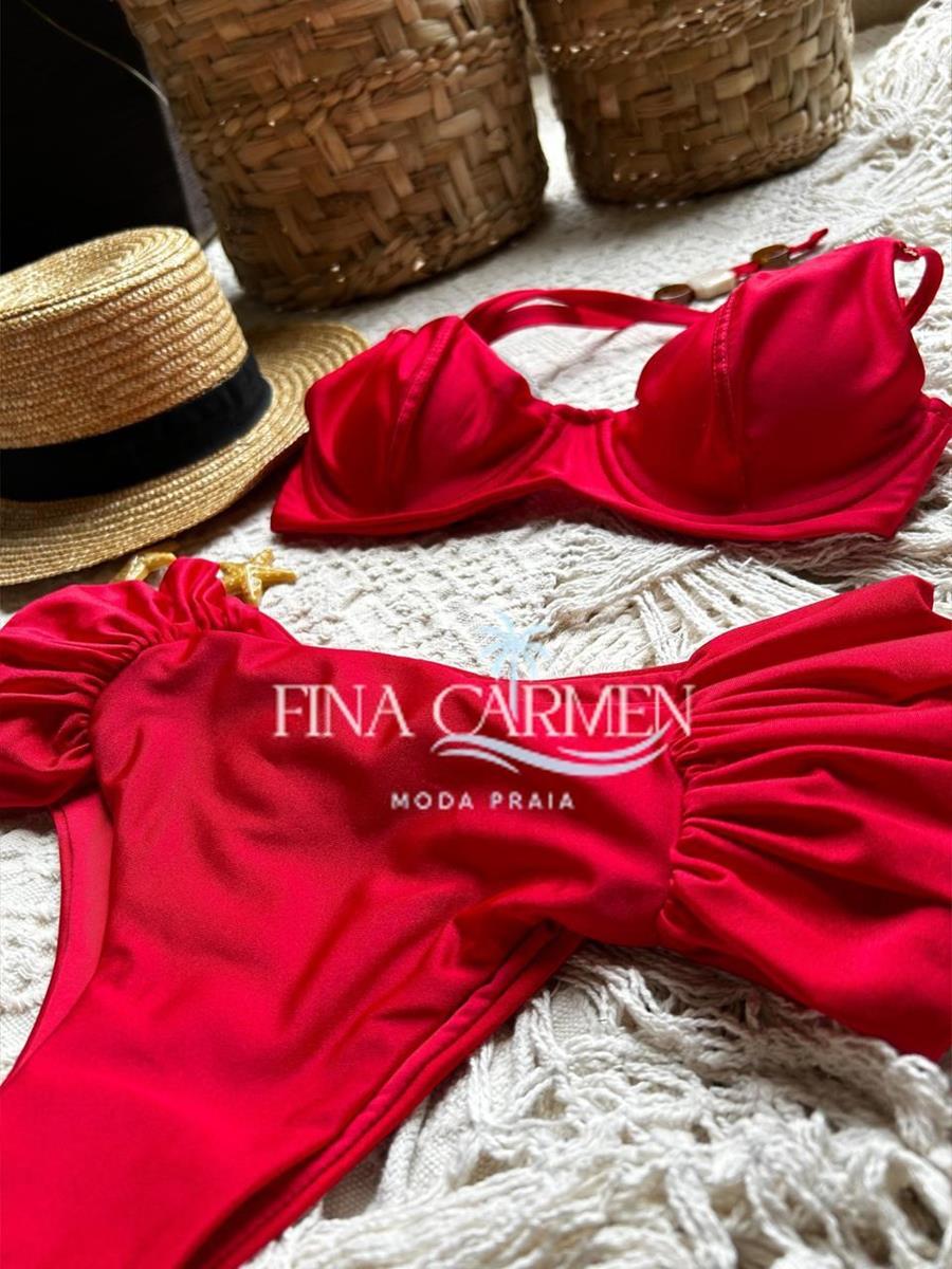 Clássico e sofisticado, o biquíni vermelho com bojo e calcinha de cintura alta é a escolha perfeita para quem busca conforto e elegância à beira-mar. O top estruturado com bojo oferece excelente sustentação e valorização do busto, enquanto as alças com detalhes em contas trazem um toque artesanal e moderno. A calcinha de cintura alta modela a silhueta com charme retrô e muito estilo.