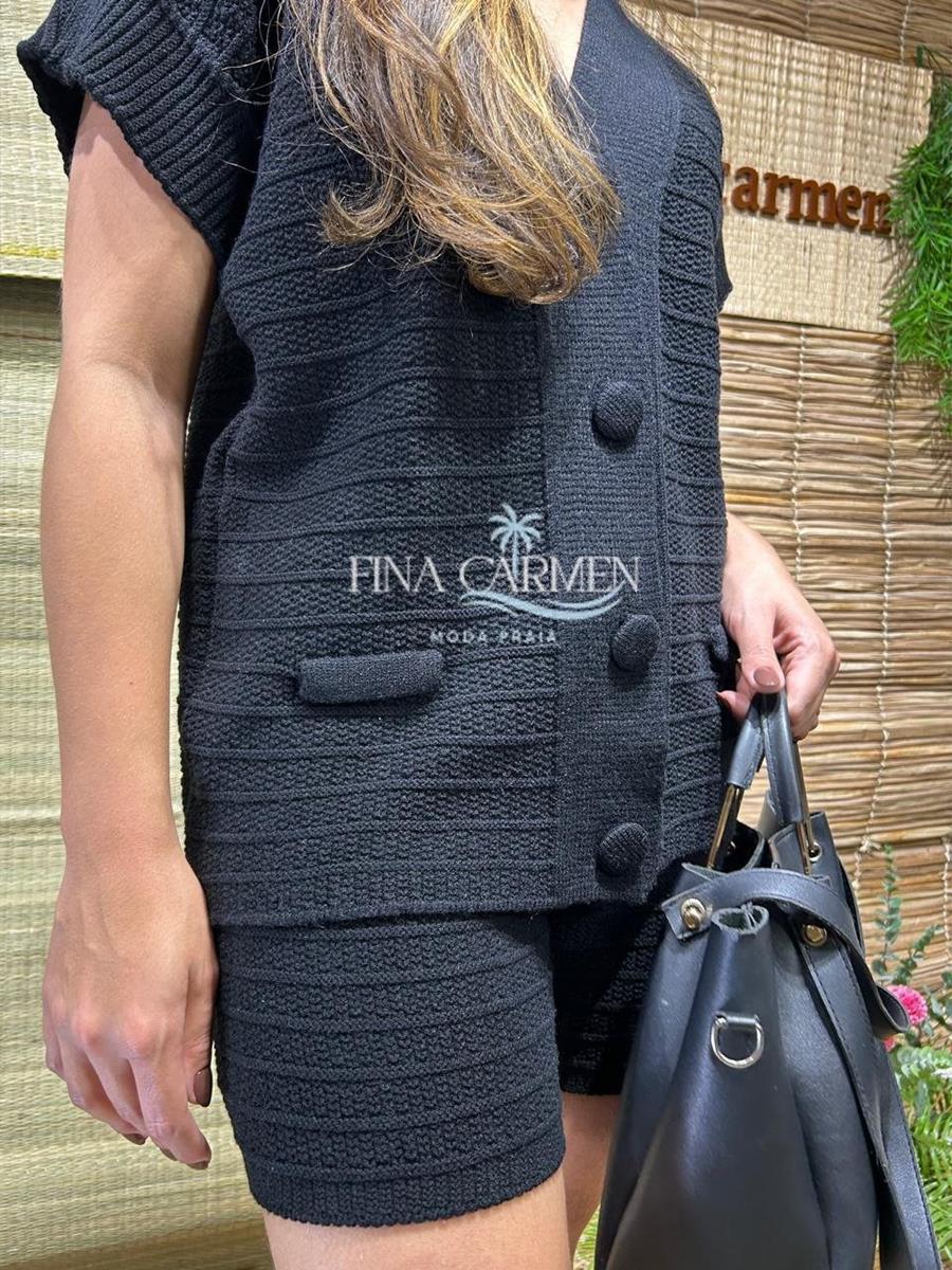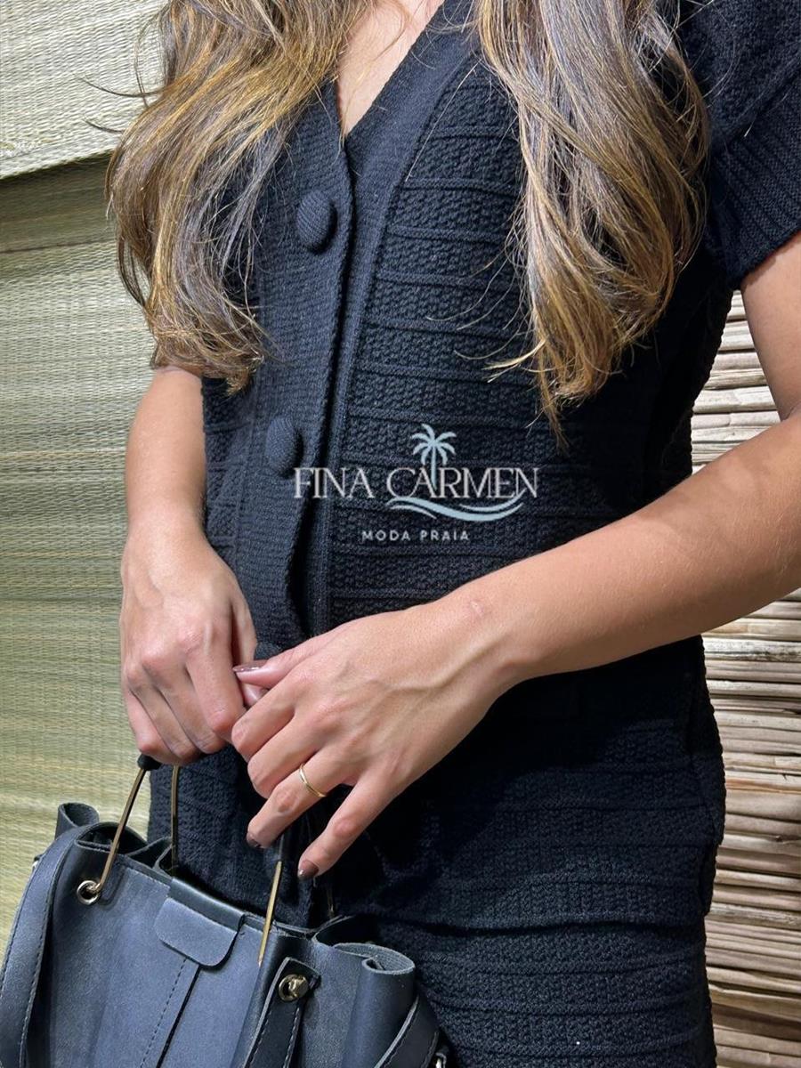 Elegante e atemporal, o conjunto feminino preto de tricot com saia e blusa é a escolha ideal para um visual refinado e versátil. Com textura delicada e acabamento estruturado, o modelo une conforto e sofisticação em cada detalhe. Os botões frontais e bolsos decorativos trazem um toque clássico, perfeito para quem busca estilo e praticidade em uma única peça.