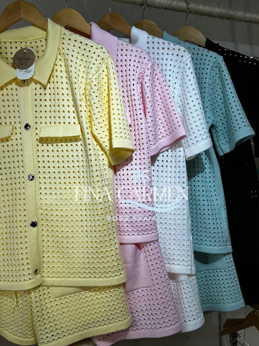 Leve e elegante, o conjunto feminino branco de laise com camisa e short é a escolha ideal para compor looks frescos e sofisticados. O tecido de laise, com suas tramas delicadas e toque suave, proporciona conforto e um visual naturalmente refinado. A camisa com botões frontais e o short com modelagem solta garantem um caimento perfeito para dias de calor com muito estilo.